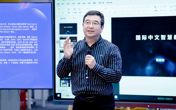 随后,荀恩东教授分享了其基于AI技术在教育领域的前瞻探索,聚焦于如何让大模型切实赋能教师这一关键课题。他创新性地提出了以数据、知识与技术系统三者协同联动的路径,旨在有助于国际中文智慧教育实现深度变革。与那些将大模型直接视为教学主体的观点不同,荀教授着重强调应把大模型当作得力工具,巧妙地嵌入教学流程之中,全力支撑教育工作者达成个性化、可持续的教学目标。